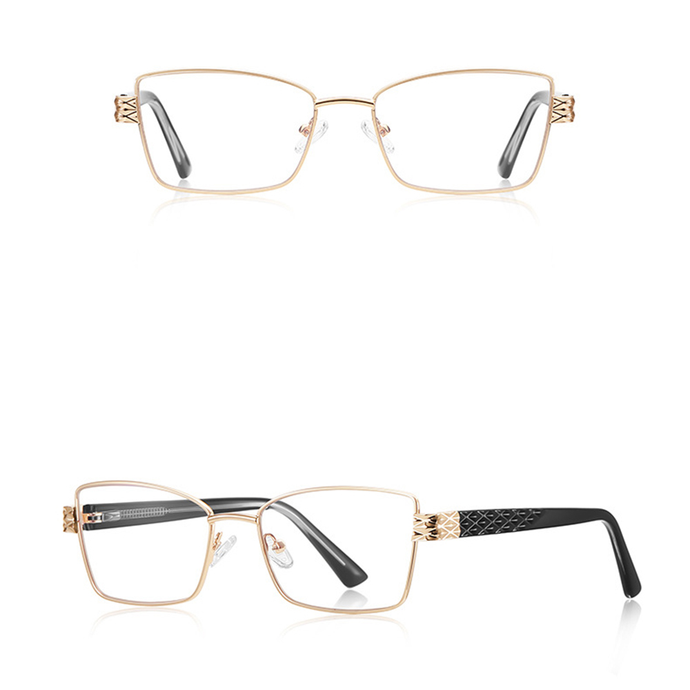 A téglalap alakú, arany színű fém keret időtlen és kifinomult megjelenést biztosít. A klasszikus téglalap forma modern vonalakkal párosul, amely szinte minden arcformához tökéletesen illeszkedik, kiemelve viselője eleganciáját.