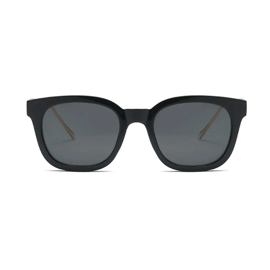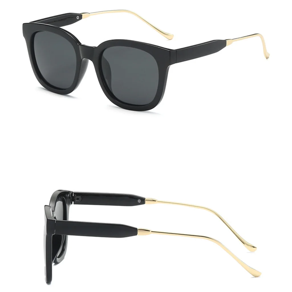 - Elegáns fém szárak: Az arany színű, vékony fém szárak elegáns kontrasztot és prémium érzetet adnak a fényes fekete kerethez, emellett rendkívül kényelmes viseletet biztosítanak.