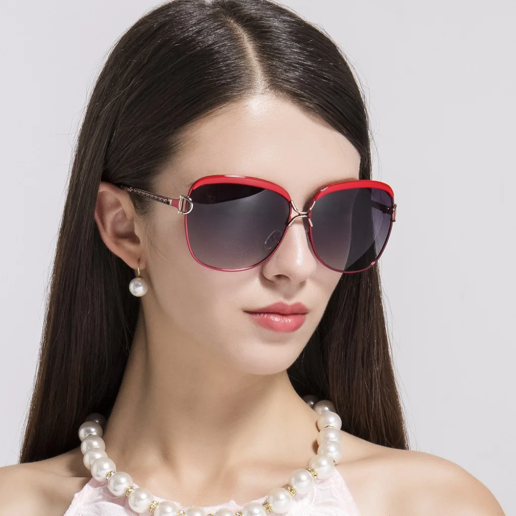 • Elegáns piros fém keret: A prémium minőségű, tartós fémkeret élénk piros színe azonnal magára vonzza a tekinteteket. Az oversized, enyhén pillangó vagy macskaszem formájú design modern és nőies megjelenést kölcsönöz.
