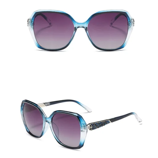 - Modern és elegáns design: Az oversized, pillangó/macskaszem forma időtlen eleganciát kölcsönöz, amely kiemeli viselőjének nőies vonásait. A kék/szürke színátmenetes keret finoman harmonizál a sötétkék/lila árnyalatú lencsékkel, egyedi és kifinomult megjelenést biztosítva.
