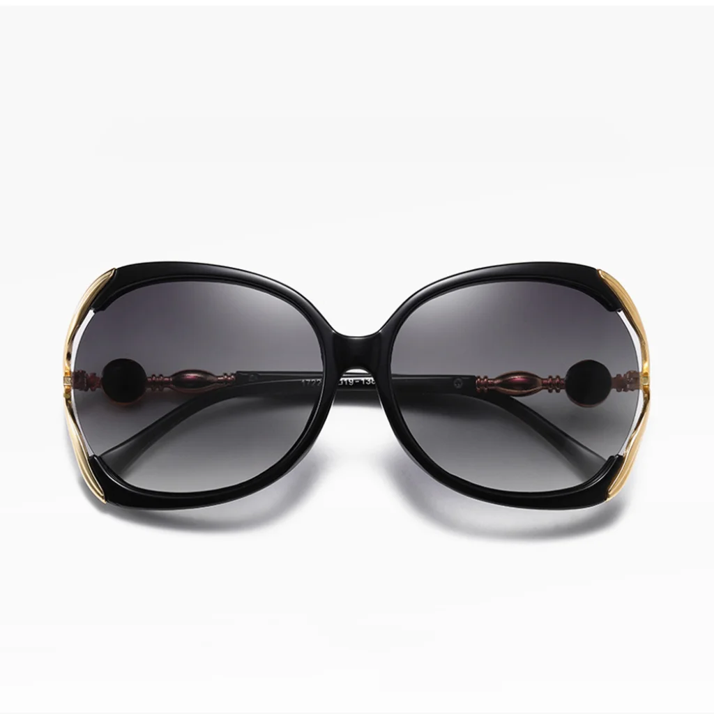 - Színkombináció: Időtlen fekete keret, elegáns szürke átmenetes lencsékkel és fényűző arany színű ötvözet részletekkel.