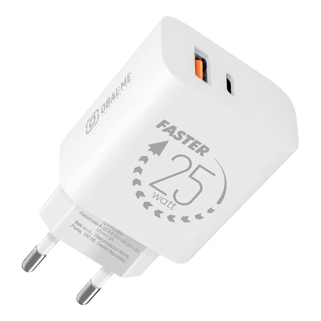 OBAL:ME Fali töltő USB-A + USB-C 25W Fehér