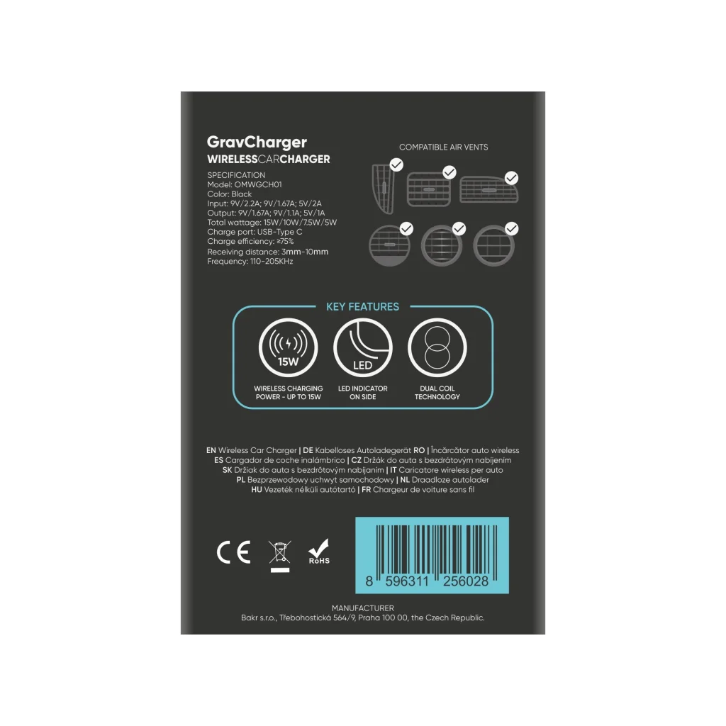 Az OBAL:ME GravCharger segítségével biztonságos és hatékony vezeték nélküli töltést biztosíthatsz telefonod számára vezetés közben.