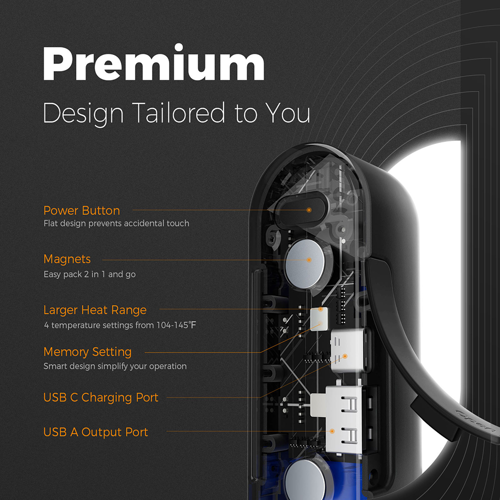 Termék leírás Ocoopa - Kézmelegítő UT2s (UT2S-BK) - USB-C, Power Bankkal, Elektromos, Mágneses Dizájn, MagTwins, 2x 5000mAh - Fekete