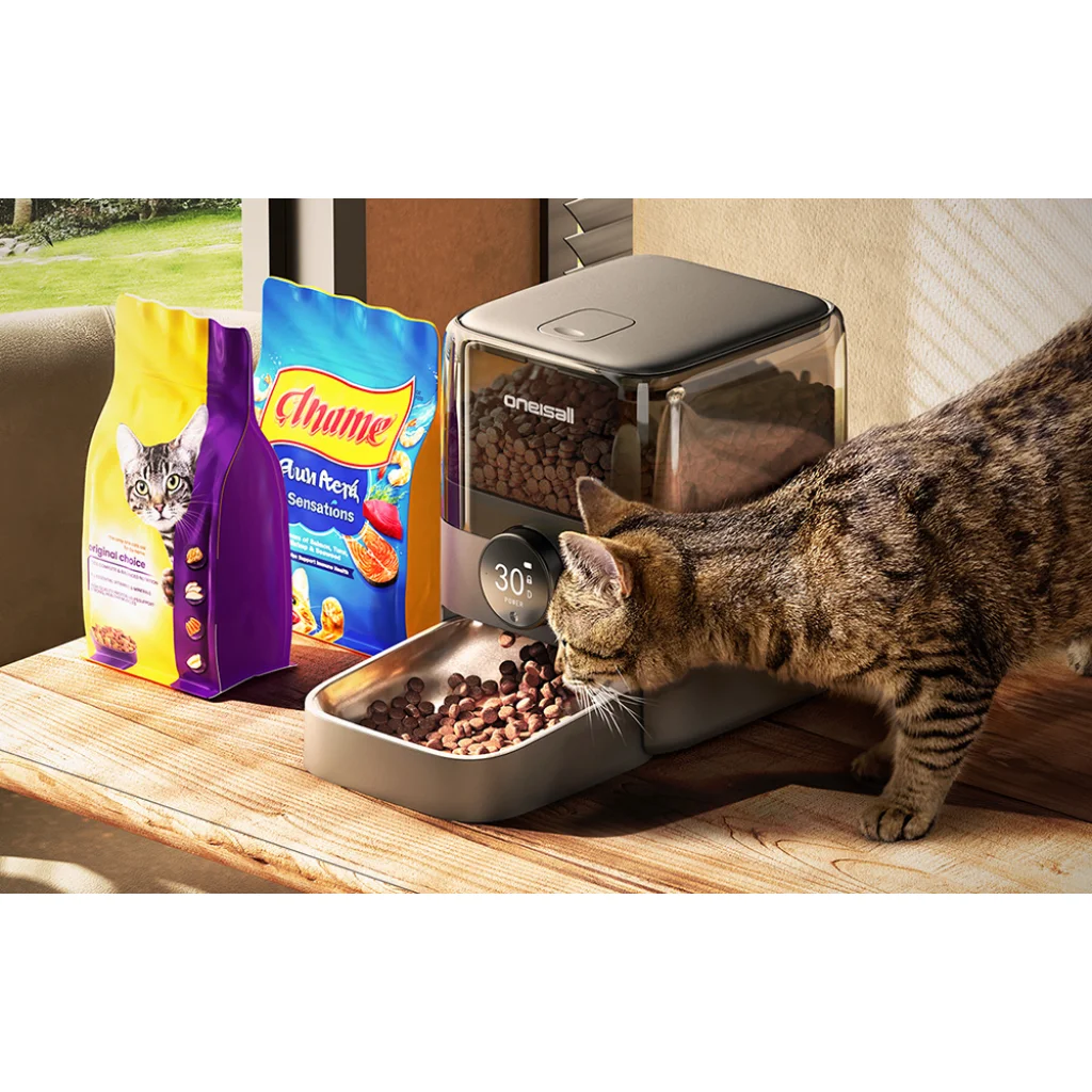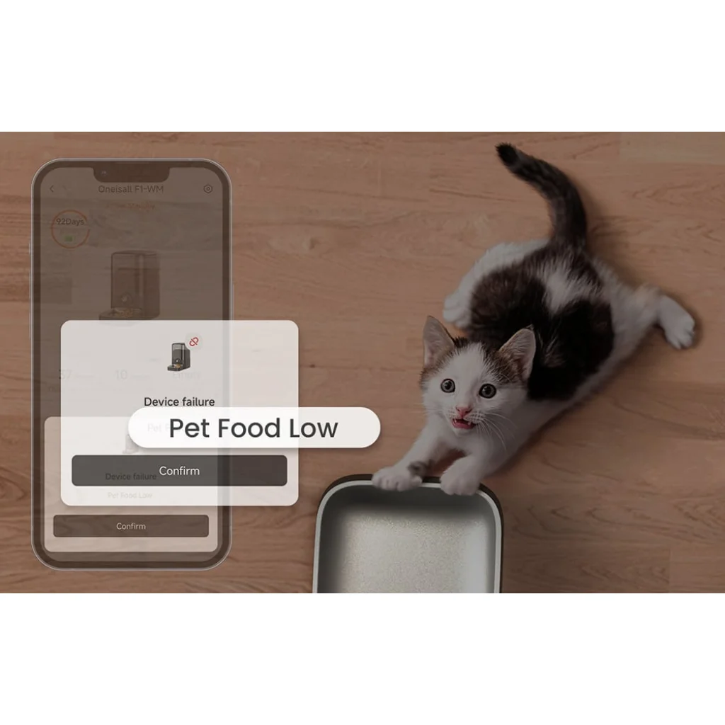 A Oneisall F1-M egy automatikus ételadagoló, amelyet úgy terveztek, hogy a háziállat és gondozója számára egyaránt kényelmes legyen a mindennapokban. Nagy kapacitásával és alkalmazással vezérelhető funkciójával a készülék akkor is biztosítja a rendszeres étkezést, amikor Ön nincs otthon.