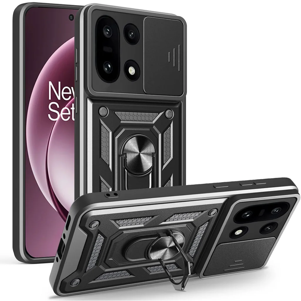 - A tokba integrált, precízen elcsúsztatható CamShield kamerafedél (mint ahogyan a képeken látható, a könnyed mozdulatot jelző nyilakkal) maximális védelmet garantál a OnePlus 15 érzékeny kameraobjektívjeinek a karcolások és ütések ellen. A lencsék biztonságban vannak, amikor nem használod őket.