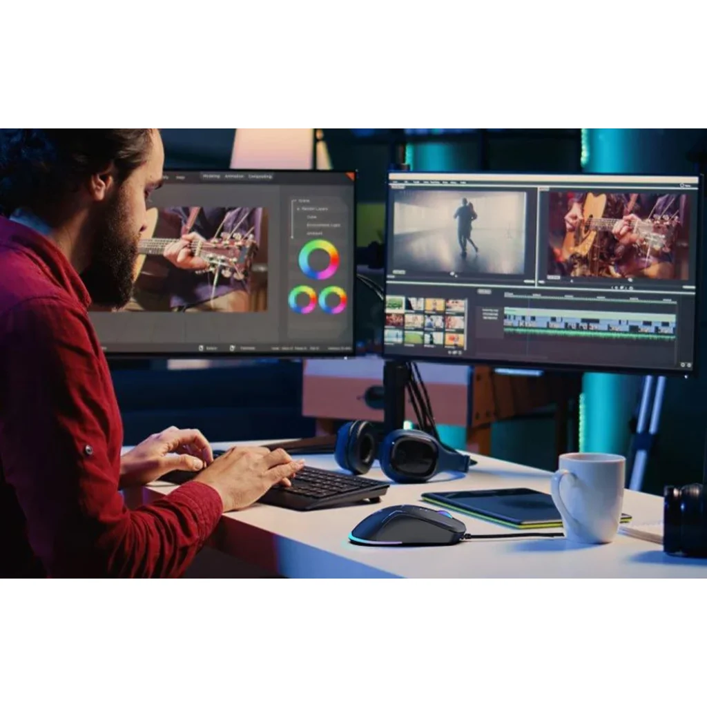 A 7 üzemmóddal rendelkező RGB háttérvilágítás látványosabb megjelenést kölcsönöz az egérnek. Az élénk színek gyenge fényviszonyok mellett is jól láthatók, így könnyen a számítógépes konfiguráció többi eleméhez igazítható.