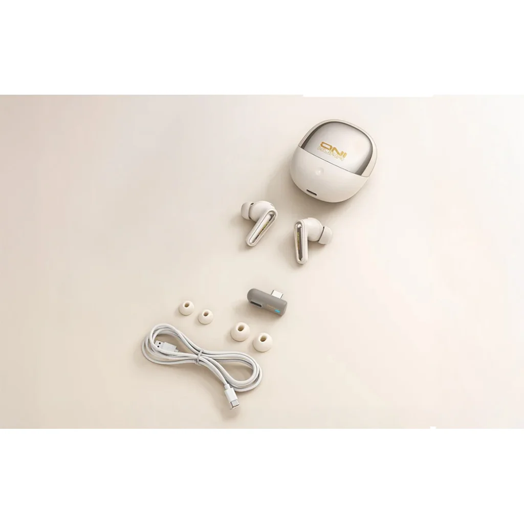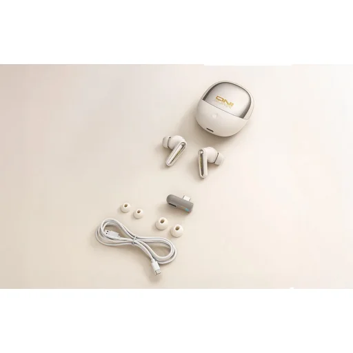 TWS ONIKUMA TX610 fejhallgató (bézs) Ismerd meg az ONIKUMA TX610-et - a TWS fejhallgatót játékosoknak, zenekedvelőknek és mindenkinek, aki értékeli a kényelmet és a nagyszerű hangzást. Ez a modell ötvözi a fejlett ANC+ENC zajszűrést, a kétsávos csatlakoztathatóságot (Bluetooth 5.4 és 2,4 GHz), a kivételes hangminőséget a 13 mm-es meghajtókkal, a hosszú, akár 35 órás üzemidőt a hordtáskával, valamint a könnyű, ergonomikus, fröccsenésálló kialakítást.