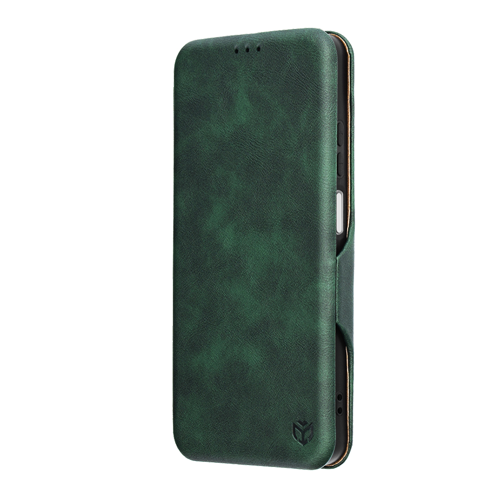 Ez a tok gondosan válogatott, kiváló minőségű PU bőr anyagból készült, mely nem csak kellemes tapintású, de ellenálló is a mindennapi használat során. A mély, vintage hatású zöld szín eleganciát sugároz, és egyedi megjelenést kölcsönöz készülékednek. A Techsuit logó finom dombornyomással díszíti a tok elejét, tovább erősítve a prémium érzetet. A belső rész puha, sötét színű béléssel rendelkezik, ami extra védelmet nyújt a kijelzőnek.