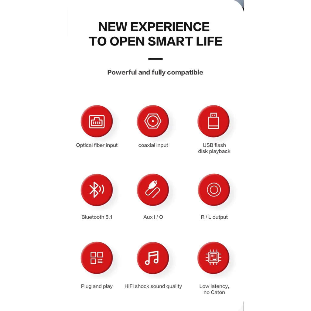 - Bluetooth 5.1 audió vevő: Frissítse fel vezetékes hangszóróit, otthoni sztereó rendszerét vagy fejhallgatóját vezeték nélküli képességekkel. Streameljen zenét okostelefonjáról vagy más Bluetooth-képes eszközről kristálytiszta minőségben, akár 20 méteres akadálymentes távolságból. A külső antenna stabilabb és hosszabb hatótávú vezeték nélküli kapcsolatot biztosít.