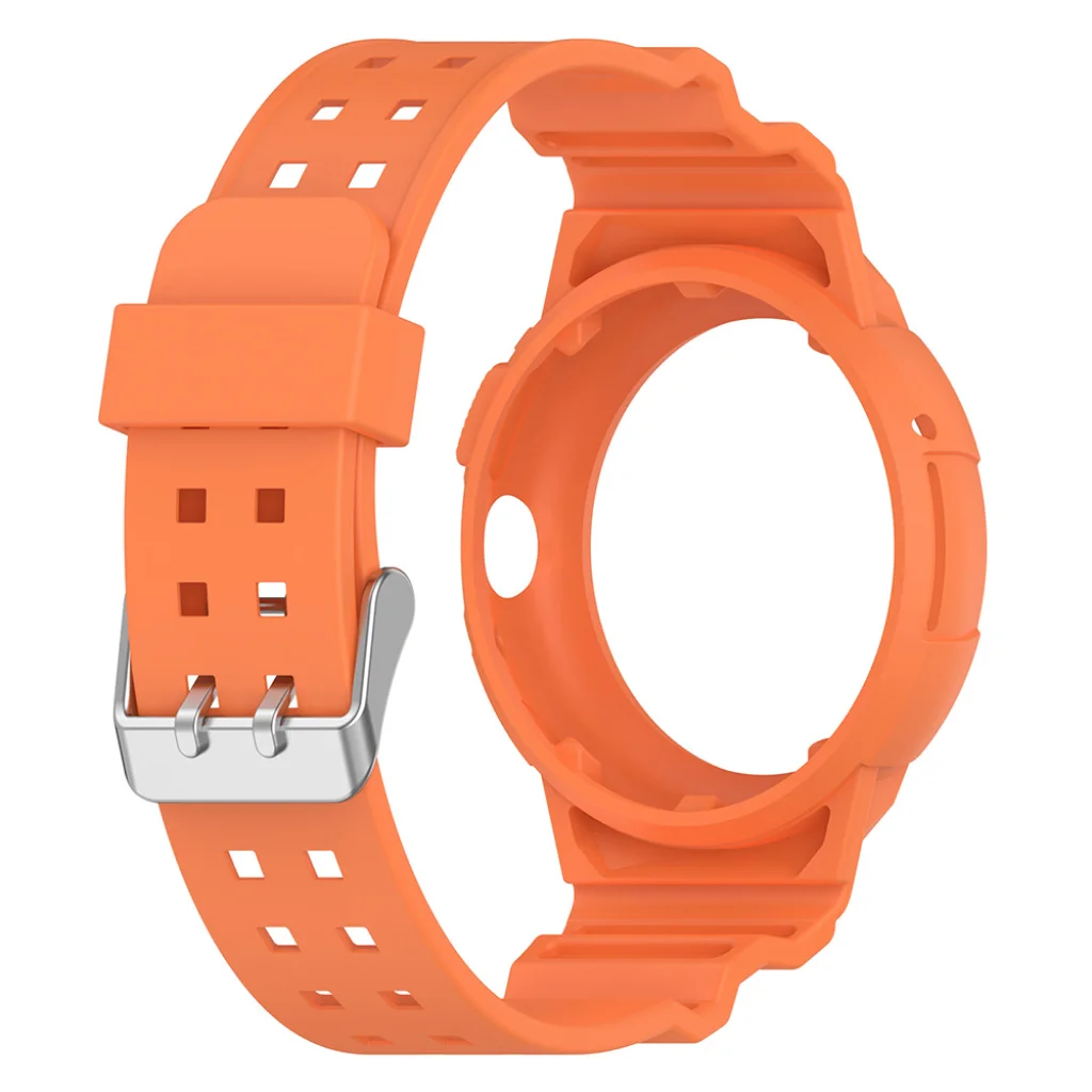A Techsuit (W065) óraszíj különlegessége az innovatív, egybeépített kialakításban rejlik. A rugalmas, minőségi szilikon anyagból készült szíj nemcsak kényelmesen illeszkedik a csuklóra, hanem egy erős védőtokkal is körbeöleli az óra testét. Ez a robusztus keret hatékonyan óvja készülékét a mindennapi ütések, karcolások és portól, miközben minden gomb és funkció (például a digitális korona) hozzáférhető marad.