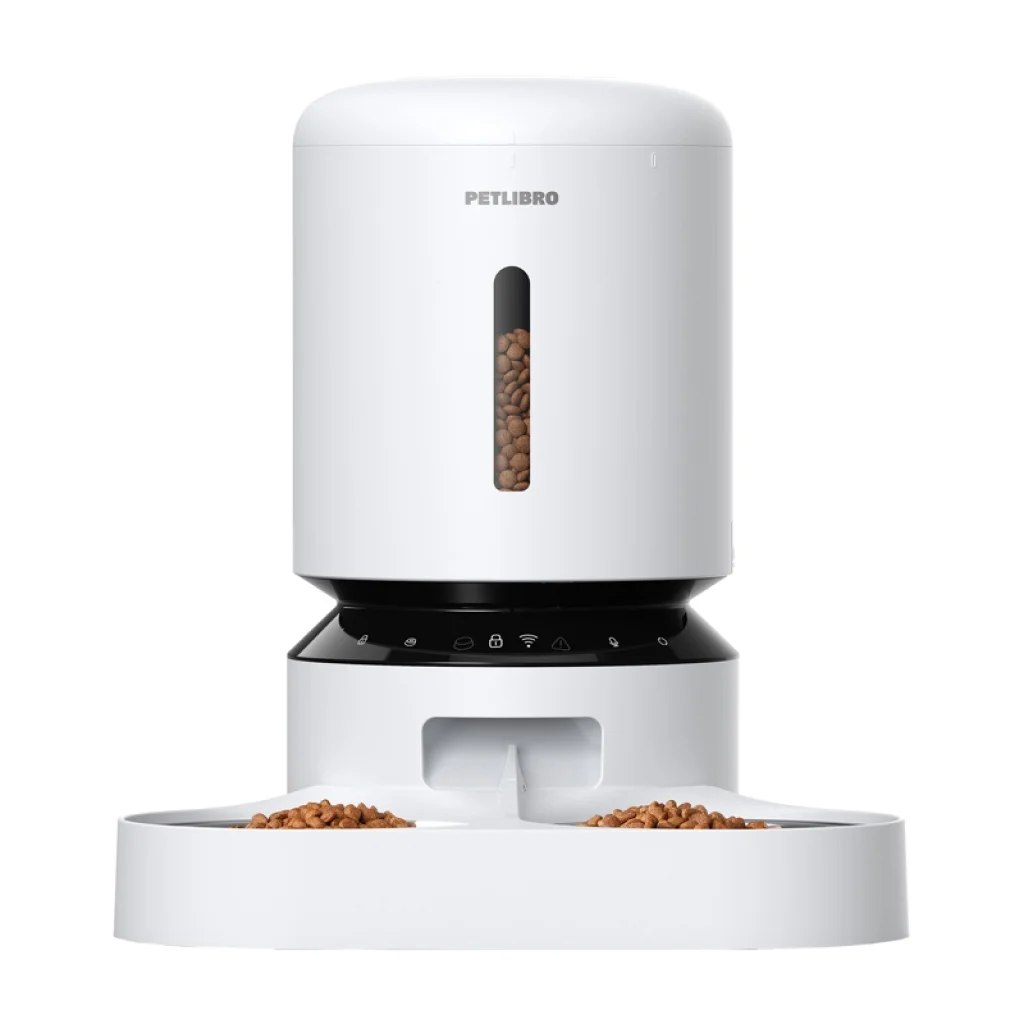 Petlibro Granary ételadagoló dupla tállal, Wifi, 5L (fehér). Szeretné kényelmesen etetni háziállatait? A Petlibro Granary dupla tállal ellátott ételadagolót a két háziállat gondozóinak szem előtt tartásával tervezték. Az 5 literes kapacitással és a Wi-Fi alkalmazáson (2,4 GHz és 5 GHz) keresztül távolról is kezelhető lehetőséggel teljes ellenőrzést nyerhet kedvence étkezési rendje felett - még akkor is, ha Ön nincs otthon. A készülék lehetővé teszi, hogy egyetlen kattintással engedélyezze vagy törölje az etetési ütemtervet, valamint egyedi hangüzeneteket ad az étkezésekhez. Az adagolóban található alacsony akkumulátor- és etetés-hiányra vonatkozó értesítésekkel, valamint a csemegék igény szerinti adagolásának lehetőségével biztos lehet benne, hogy kedvenceiről mindig jól gondoskodik.