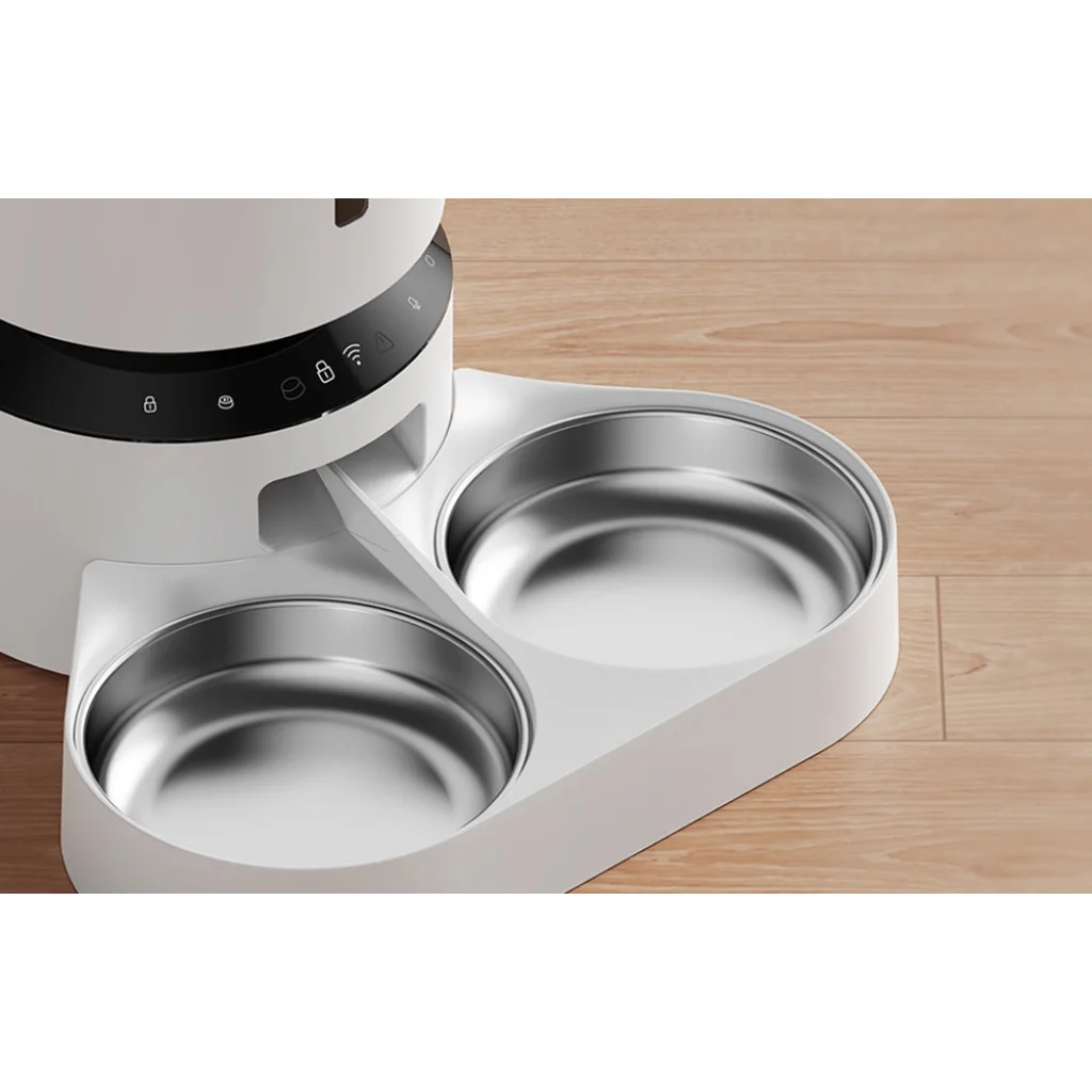 Kedvence biztonsága és kényelme elsődleges fontosságú. A 304 rozsdamentes acélból készült tál megakadályozza a zsírlerakódást és az állpattanásokat, a szivárgásmentes kialakítás szilikon tömítéssel, forgózáras fedéllel és nedvességelnyelővel pedig frissen tartja az ételt. Az átgondolt tervezés megkönnyíti a tisztítást és garantálja a biztonságot - a tál és az adagolóelemek könnyen eltávolíthatók, a nejlon kábel ellenáll a rágásnak, a szilikonbetétek pedig stabilizálják a készüléket. A készülék 2-15 mm-es méretű száraz ételeket kezel, így sokoldalú és megbízható.