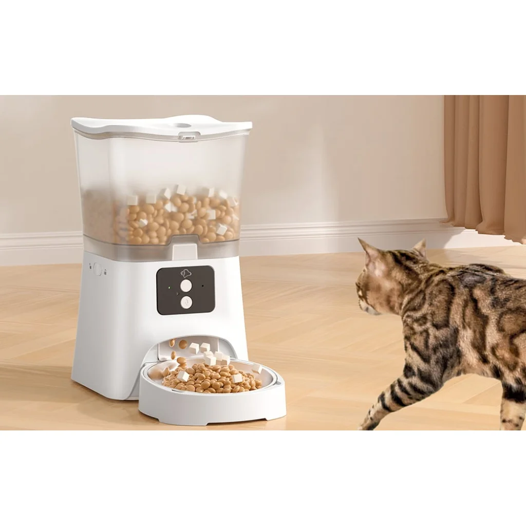 A Petsuper PF02-2 3 literes automata etető megkönnyíti a mindennapi kisállat gondozást. Az okostelefon alkalmazás segítségével távolról vezérelheted az étel adagokat, beállíthatod az etetési időpontokat, és nyomon követheted a készülék állapotát. A Petsuper PF02-2 hangüzenet rögzítő funkcióval is rendelkezik, amely tovább segíti a kisállattal való interakciót.