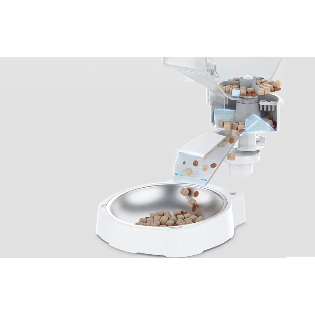 Az innovatív rendszer biztosítja a különböző típusú ételek - a száraz, a fagyasztva szárított és a vegyes formák - folyamatos adagolását. A különleges kialakítás széles nyílásokkal és puha keverő mechanizmussal megelőzi a dugulást. Így biztos lehetsz benne, hogy kisállatod mindig időben kapja meg ételét.