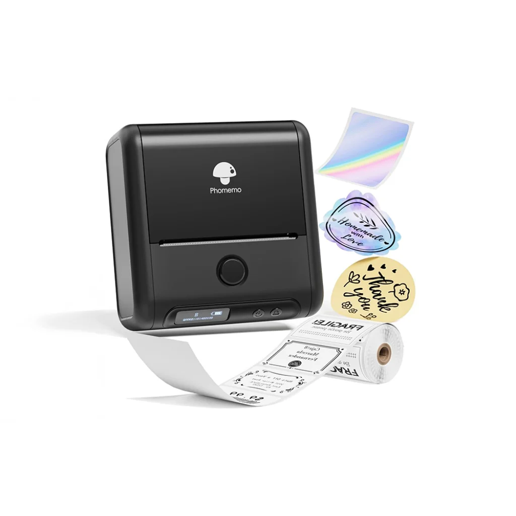 A Phomemo M200 egy fejlett címkenyomtató, amely egyesíti a funkcionalitást a modern dizájnnal. Termikus nyomtatási technológiát használ, és 203 dpi felbontást biztosít, így tiszta, pontos grafikát élvezhet. Széles körű kompatibilitásával is kitűnik, és kétféleképpen csatlakoztatható: Bluetooth-on keresztül (okostelefonokkal és táblagépekkel) vagy USB-n keresztül (laptopokkal). A készülék kezelése és a címkék tervezése a Print Master alkalmazással könnyebbé válik az Ön számára.
