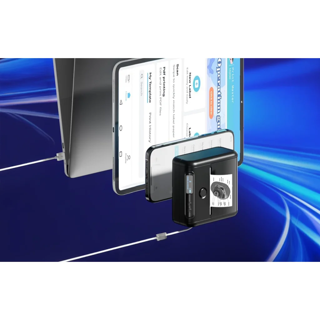 Az M200 támogatja a Bluetooth-kapcsolatot, amely lehetővé teszi a mobileszközökhöz, például okostelefonokhoz és táblagépekhez való gyors csatlakozást. USB-kábelen keresztül számítógéphez is csatlakoztathatja. A nyomtató kompatibilis a legtöbb népszerű operációs rendszerrel, például Android, iOS, Windows, macOS, Chrome OS és Linux operációs rendszerekkel.