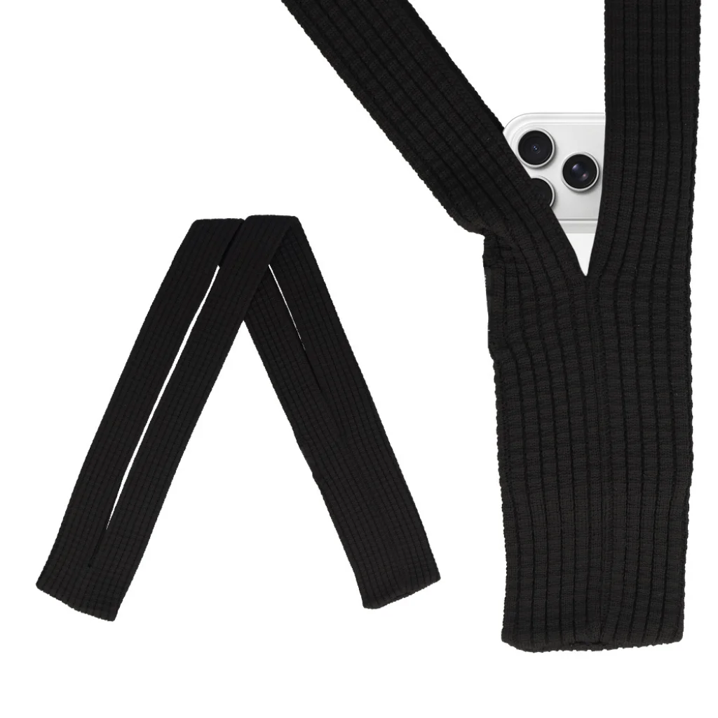 Pocket Strap – rugalmas nyakba akasztható telefon zseb Egy minimalista, rugalmas telefon tok, amely hosszú pánton egy vékony zsebet formál. 3-rétegű szövési technológiával készült, amely szépen alkalmazkodik a készülékhez és kényelmes marad használat közben. Praktikus mindennapi megoldás—telefonja mindig könnyen elérhető a zsebek vagy a táska átkutatása nélkül. Főbb jellemzők - Rugalmas szerkezet – a rugalmas anyag alkalmazkodik a telefonjához és biztonságban tartja azt. - 3-rétegű szövési technológia – javított tartósság, rugalmasság és kifinomult texturált érzet. - Kényelmes viselni – a hosszú pánt közel tartja telefonját utazás, vásárlás vagy napi tevékenységek során. - Vékony zseb kialakítás – csökkenti a tömeget, miközben gyors hozzáférést biztosít a készülékhez. Műszaki adatok - Méretek: 80 cm × 8.5 cm - Maximális telefon szélesség: legfeljebb 83 mm - Anyag: Nylon (14%), Poliészter szál (85%), Poliuretán (1%) - Gyártási módszer: 3-rétegű szövés