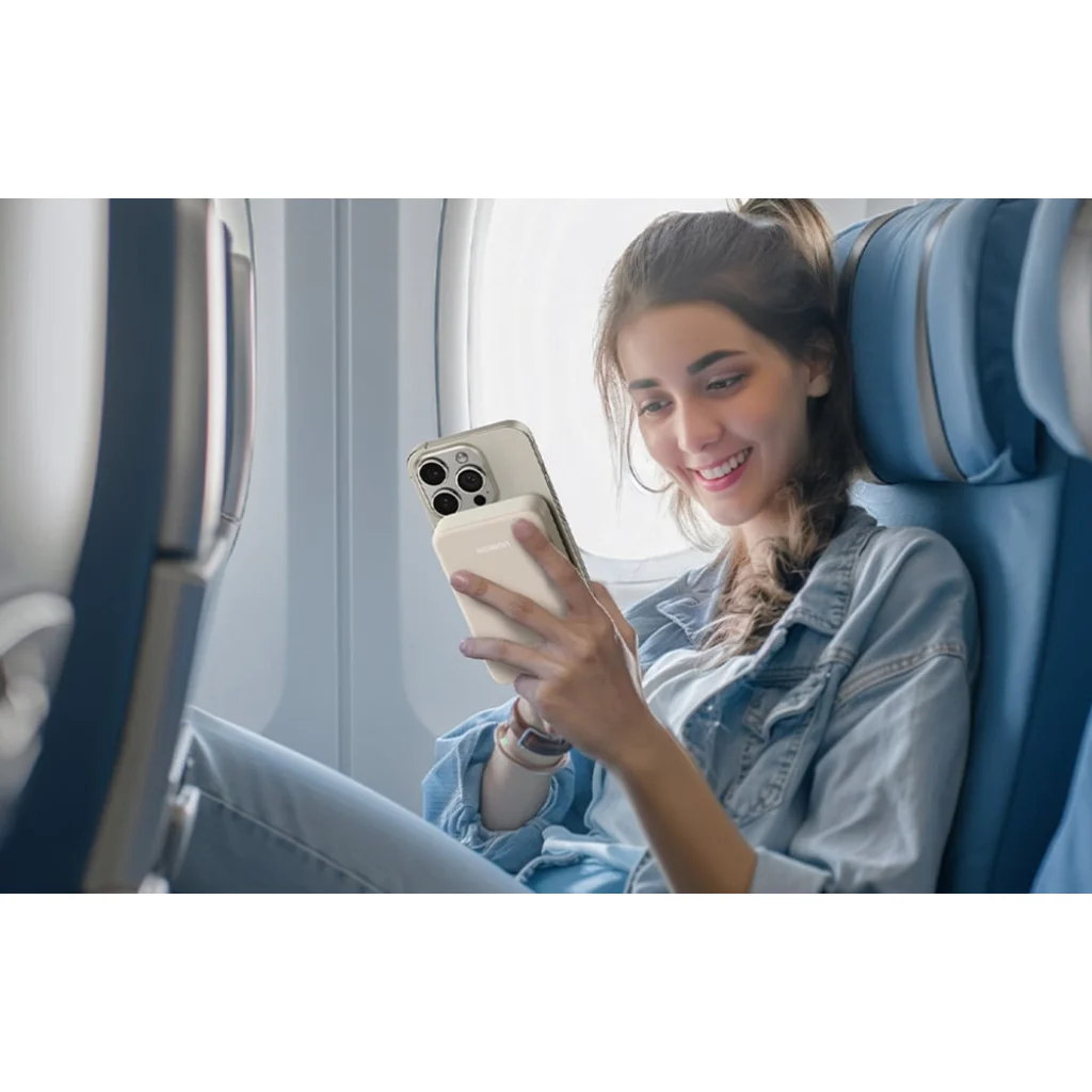 Az eszköz légitársaságok által jóváhagyott, így tökéletes útitárs repülős utazásokhoz és azon túl. Kompakt mérete és beépített 12,5 cm-es USB-C kábele megakadályozza a rendetlenséget, így szervezett és kényelmes maradhat. Bárhol is van, mindig biztos lehet abban, hogy eszközei feltöltve lesznek.