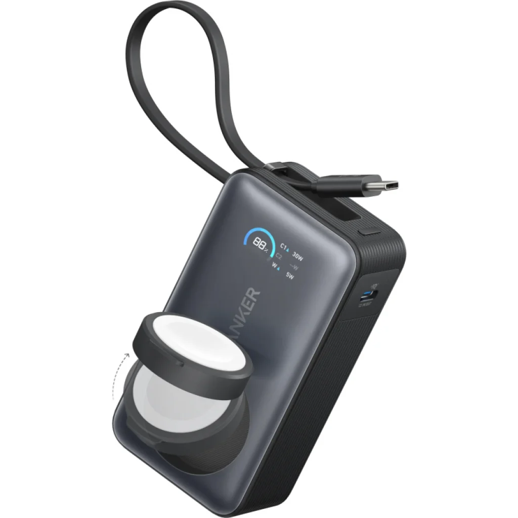 - Nagy teljesítményű kimenet: Akár 30W-os töltést biztosít az USB-C portján vagy a beépített, strapabíró USB-C kábelén keresztül, mellyel gyorsan feltöltheti iPhone-ját, iPadjét, vagy akár egy MacBook Air (M3) készüléket. Az iPhone 16 Pro 50%-ra tölthető mindössze 27 perc alatt.