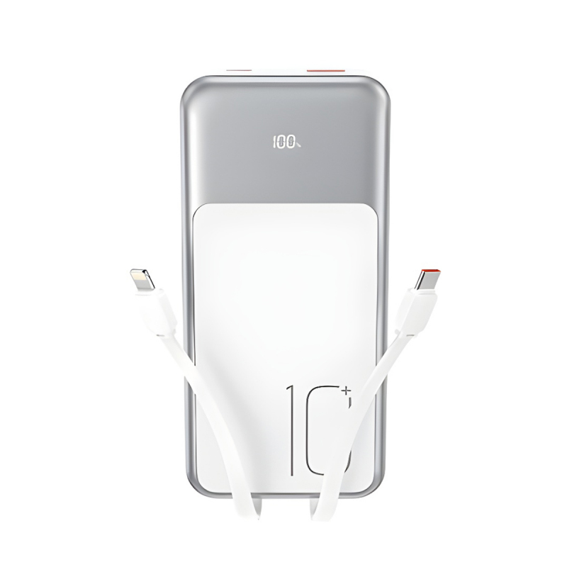 Powerbank XO DESIGN PR248 - Fehér Maradj kapcsolatban bárhol az XO PR248 powerbankkal, amely egy hordozható eszköz, megbízható energiát biztosítva útközben. 10.000 mAh kapacitásával és tartós ABS+PC burkolatával, a robusztusságot ötvözi a hordozhatósággal, tökéletes utazáshoz, túrázáshoz, vagy napi használathoz. Gyors töltés Az XO PR248 USB-A, USB-C, Type-C és Lightning portokkal ellátva lehetővé teszi, hogy telefonokat, táblagépeket és más eszközöket egyidejűleg töltsön. Támogatja a modern gyors töltési szabványokat, mint például a PD 2.0/3.0, QC 2.0/3.0 és AFC, biztosítva a sebességet és a széles eszközkompatibilitást. Praktikus és biztonságos használatra Az LED jelzőfény mutatja az akkumulátor szintjét, így mindig tudja, mennyi energia maradt. Kompakt formája lehetővé teszi, hogy könnyen hordozható táskában vagy zsebben, kényelmet és biztonságot nyújtva bármilyen helyzetben.