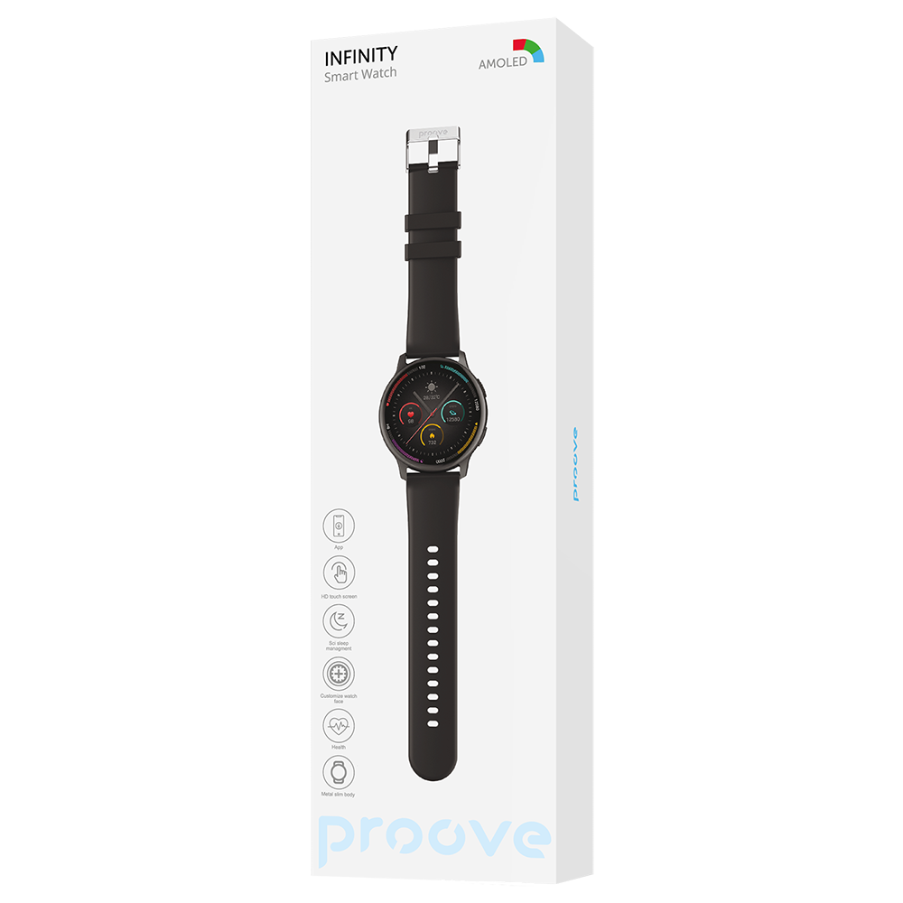Fedezd fel az okos technológia új dimenzióját a Proove Infinity-val – egy okosórával, ami a modern dizájnt, megbízhatóságot és funkcionalitást ötvözi. Elegáns háza fekete vagy ezüst változatban minden stílushoz tökéletesen illeszkedik, legyen az sportos vagy üzleti megjelenés. Fejlett egészségügyi funkciói, mint a pulzusmérés, alvásanalízis és lépésszámlálás, segítenek hogy minden nap vigyázz a fittségedre. Az intuitív felület és hatékony akkumulátor több napos használati kényelmet biztosítanak. Proove Infinity – korlátlan lehetőségek elegáns kiadásban!