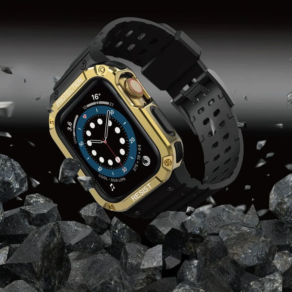 Protect Strap Band – pánt és tok Apple Watch 9 / 8 / 7 / 6 / 5 / 4 / 3 / 2 / SE / SE2 (41 x 40 x 38 mm) számára, páncélozott burkolat az órához. Erős, rugalmas és szinte páncélozott tok az Apple Watch számára. Ez egy tok és pánt egyben, amit különösen szeretni fognak a fizikai aktivitás szerelmesei. A Protect Strap Band hatékonyan megvédi okosórádat a sérülésektől sportolás közben - még extrém sportoknál is. A Protect Strap Band legfontosabb előnyei: Megbízható védelem az Apple Watch karcolások és törések ellen. 2 az 1-ben eszköz – egy pánt és egy óratok egy termékben. A tok egyszerű hozzáférést biztosít az érintőképernyőhöz és a gombokhoz. Könnyen felvehető, puha és kényelmes viselet, amely nem okoz kényelmetlenséget az intenzív sportedzés során. Protect Strap Band méretei – 41 x 40 x 38 mm. Pontosan illeszkedő Apple Watch tok pánttal. A Protect Strap Band egy tokból és egy pántból áll – mindegyik más, de ugyanilyen tartós anyagból készült. A pánt rugalmas TPU-ból készült, így szorosan illeszkedik az óratokhoz, míg a tok merev, szintetikus anyagból készült, amely visszaveri a fényt és nagyszerűen mutat a csuklón. A Protect Strap Band rendkívül könnyen felvehető, egyetlen mozdulattal. Csak helyezd be az Apple Watch tokot a pánt aljáról – hasonlóan, mint egy telefon tok esetén (nem kell levenni a tokot a rugalmas pántról!). Készítsd fel az Apple Watch-odat sportos kalandokra. Az erős és rugalmas Protect Strap Band tok tökéletes megoldás sportkedvelők számára. Tökéletesen védi az Apple Watch-ot a véletlen sérülésektől a szabadtéri tevékenységek vagy edzőterem során. Az okosórád többé nem fog félni a portól, szennyeződésektől, rázkódástól vagy ütközésektől. Stílusos keret az okosórád számára. Alakítsd sportos stílusúvá az Apple Watch-odat! Az erős, mégis kompakt pánt tokkal tökéletesen illeszkedik az informális smart casual stílushoz. A Protect Strap Band kivételes részletekre való odafigyeléssel készült - a kapocs fémcsattal rendelkezik, és a puha, kényelmes pánt szabadon állítható.