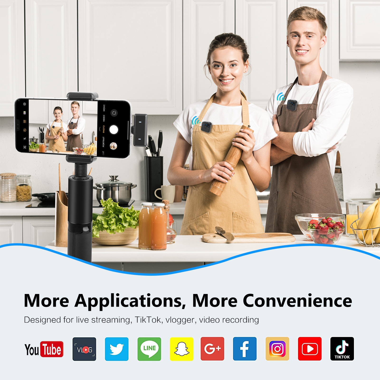 - Sokoldalú felhasználás és széles körű kompatibilitás: Akár élő közvetítésről (YouTube, TikTok, Facebook, Instagram), vlogolásról, interjúkról vagy videófelvételekről van szó, ez a mikrofon szett minden igényt kielégít. A Type-C vevőegységnek köszönhetően könnyedén csatlakoztatható a legtöbb Android okostelefonhoz és más Type-C porttal rendelkező eszközhöz. Támogatja a kétirányú monitorozást is a professzionális felhasználáshoz.