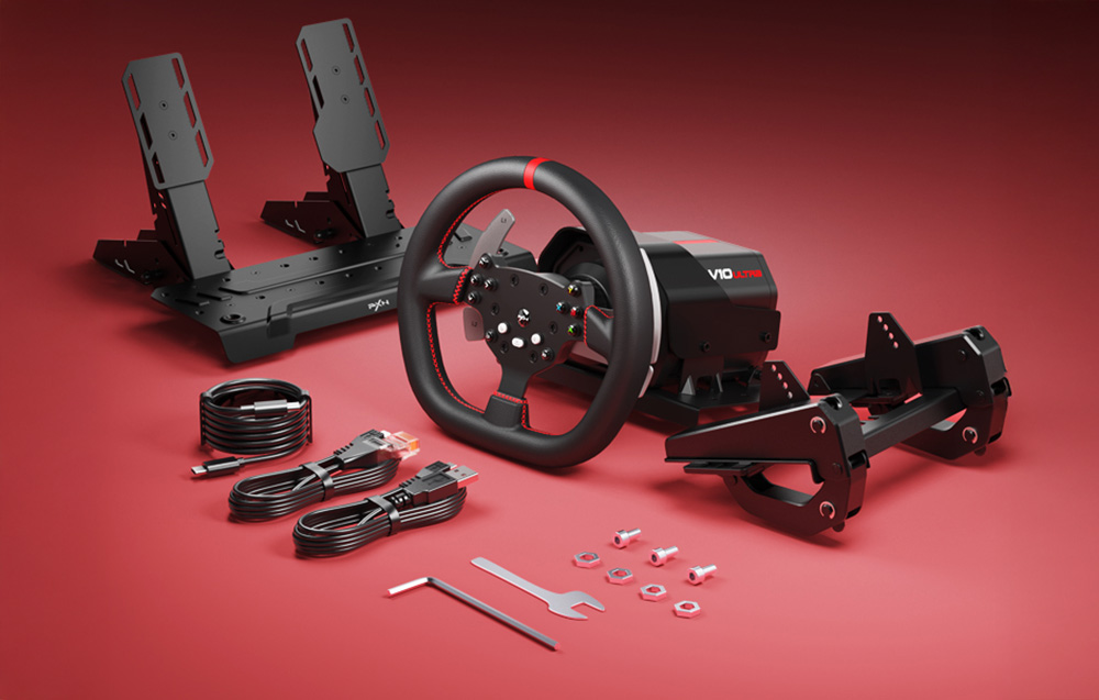 PXN-V10 Ultra játékkészlet - kormánykerék + pedál + bilincsek + rögzítő tartozékok (PS4 / Xbox One / PC / Xbox Series X& S). Emeld a versenyszimulációt a következő szintre a PXN-V10 Ultra készlettel, amely egyesíti a közvetlen meghajtás erejét, a valósághű pedálokat és az ergonomikus kormánykerék kialakítását. A 3,2 Nm nyomaték, a precíz Hall-Effect érzékelők és az intelligens hűtőrendszer révén zökkenőmentes, stabil és hosszan tartó játékélményt kapsz - kompromisszumok nélkül. A PC, Xbox One, Xbox Series X/S és PS4 (PlayStation 4, a Sony játékkonzolja) kompatibilitása azt jelenti, hogy több platformon is élvezheted a valósághű vezetést kedvenc címeidben.