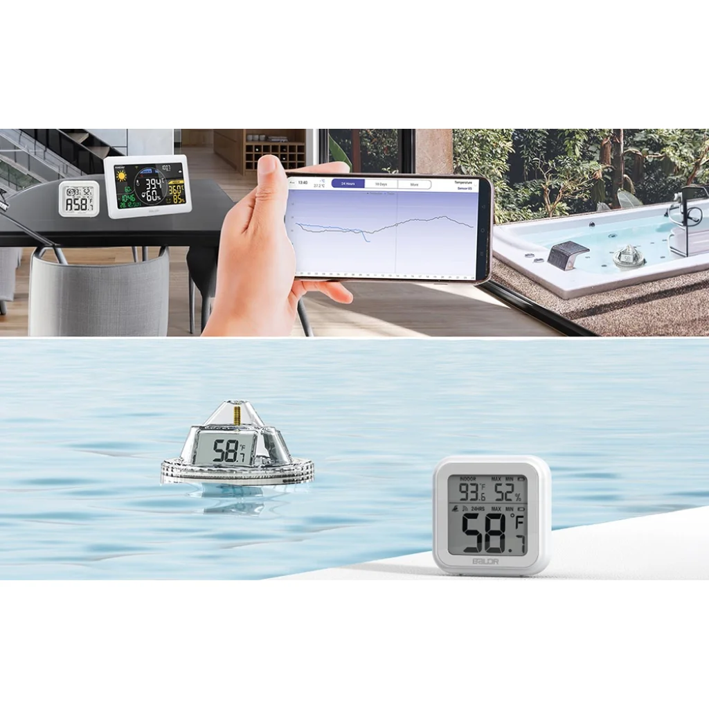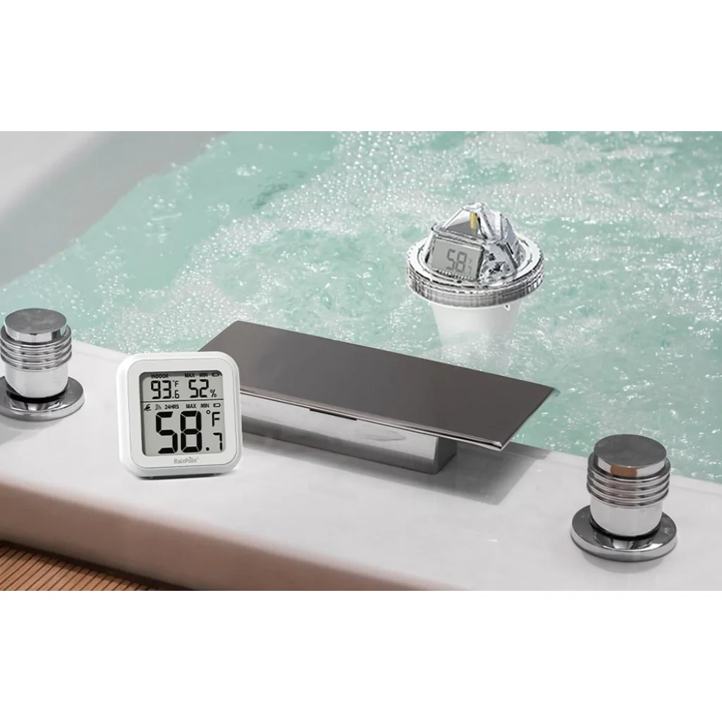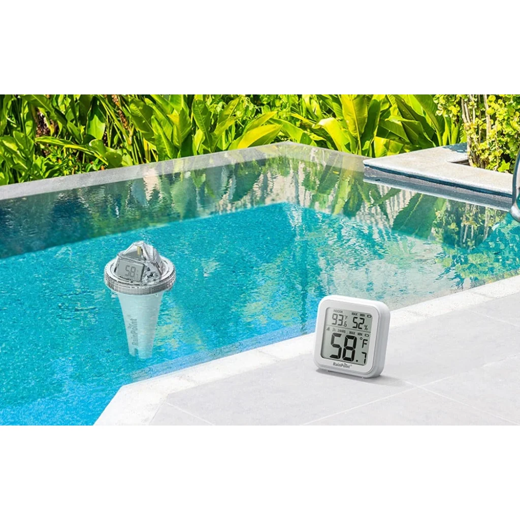 A RainPoint medencehőmérő egy úszó érzékelőből és egy beltéri vevőegységből álló készlet, amely lehetővé teszi a vízhőmérséklet kényelmes nyomon követését anélkül, hogy el kellene hagynia otthonát. A készülék vezeték nélkül működik, hatótávolsága akár 100 méter is lehet, az adatok pedig 3 percenként frissülnek. Az érzékelő -9,9 °C és 50 °C közötti hőmérsékletet mér, míg a vevőegység emellett a beltéri hőmérsékletet (-9,9 °C és 60 °C között), valamint a páratartalmat (1%–99%) is kijelzi. A modell IP68 vízálló kialakítással, nagyméretű LCD-kijelzőkkel (az érzékelőn és a vevőegységen is), elemes tápellátással rendelkezik, és HUB-bal bővíthető a mobilalkalmazáson keresztüli vezérléshez.