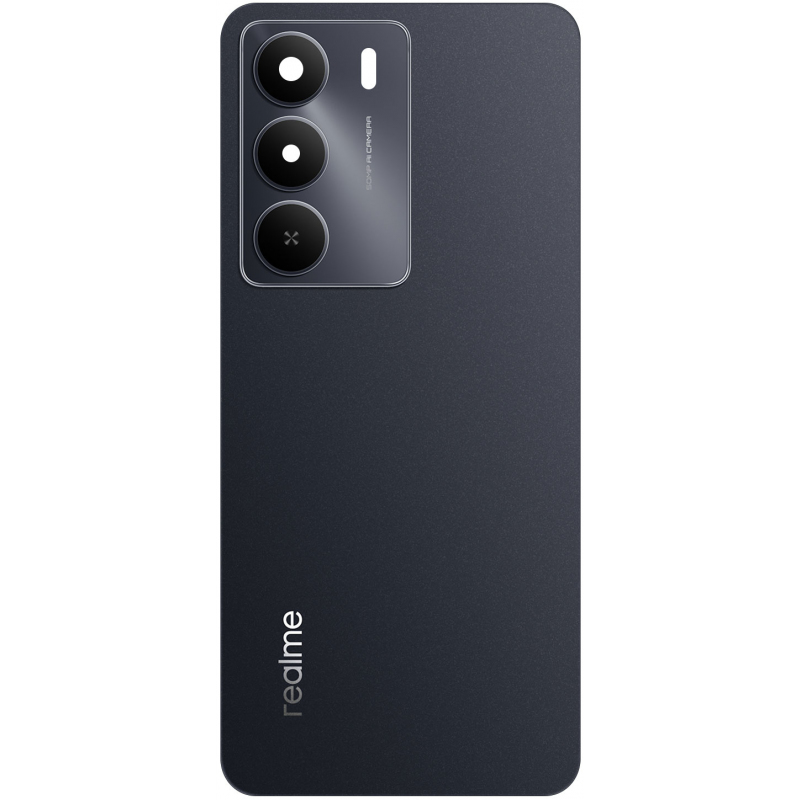 Realme 14x akkumulátor hátlap - karbon fekete. Eredeti Realme licenc alapján készült pótalkatrész, amelyet a sérült hátlap cseréjére használnak a telefonon. Tartalmaz ragasztót.