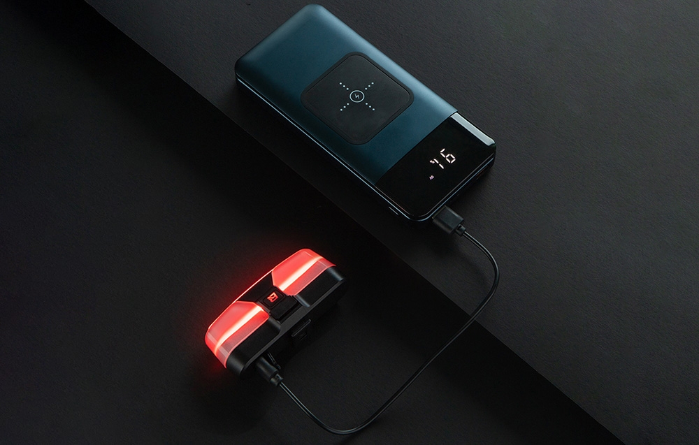 A beépített 500 mAh (lámpa) és 240 mAh (távirányító) akkumulátorok USB-C porton keresztül tölthetők. A LED kijelzők jelzik az energia megújulásának előrehaladását, és amikor az befejeződött, folyamatos fényben ragyognak. A lámpa esőálló (IPX6), így zord időjárási körülmények között is jól teljesít. A felszerelés a nyeregcsőre vagy a nyereg alá lehetséges - a szükséges tartókonzolokat mellékeljük.