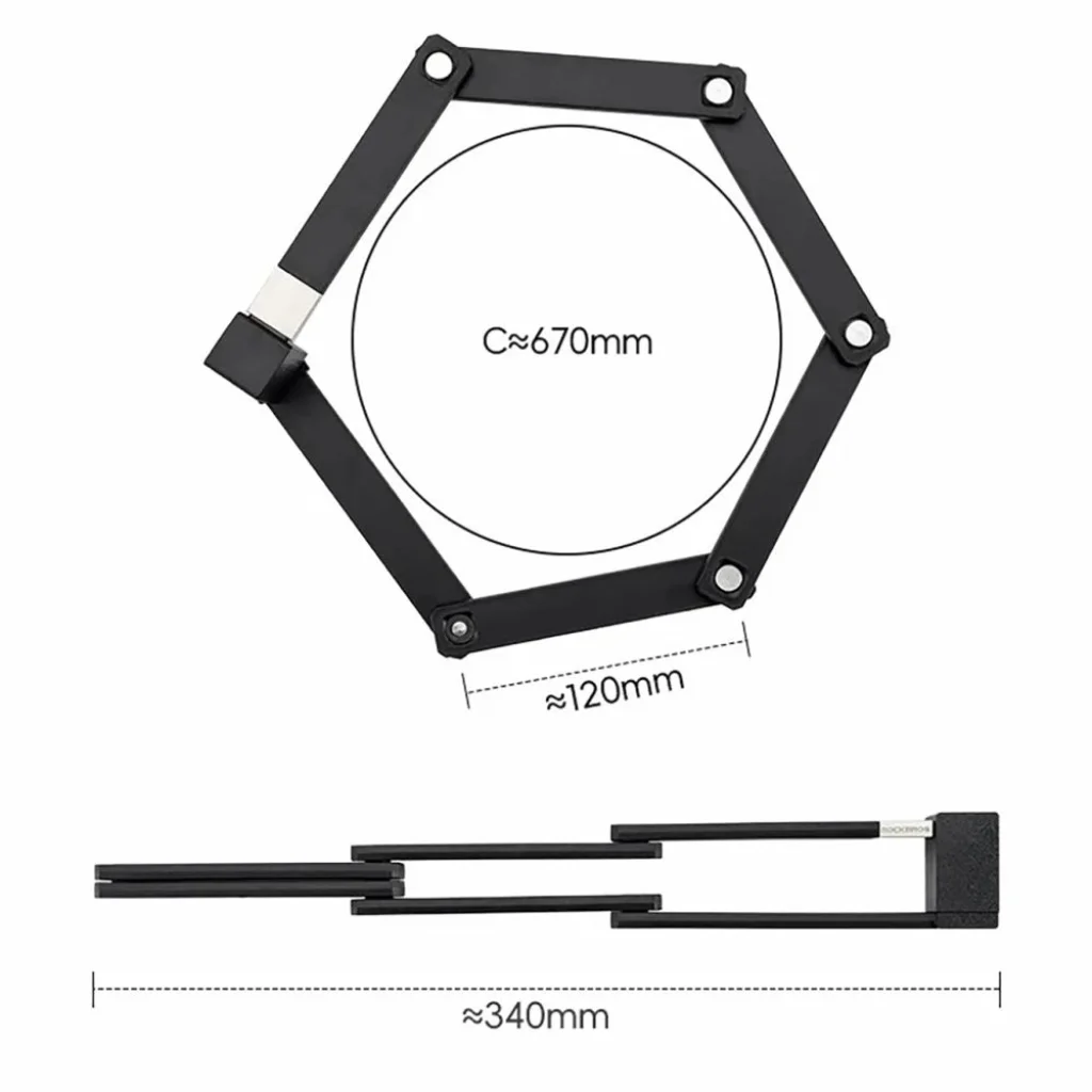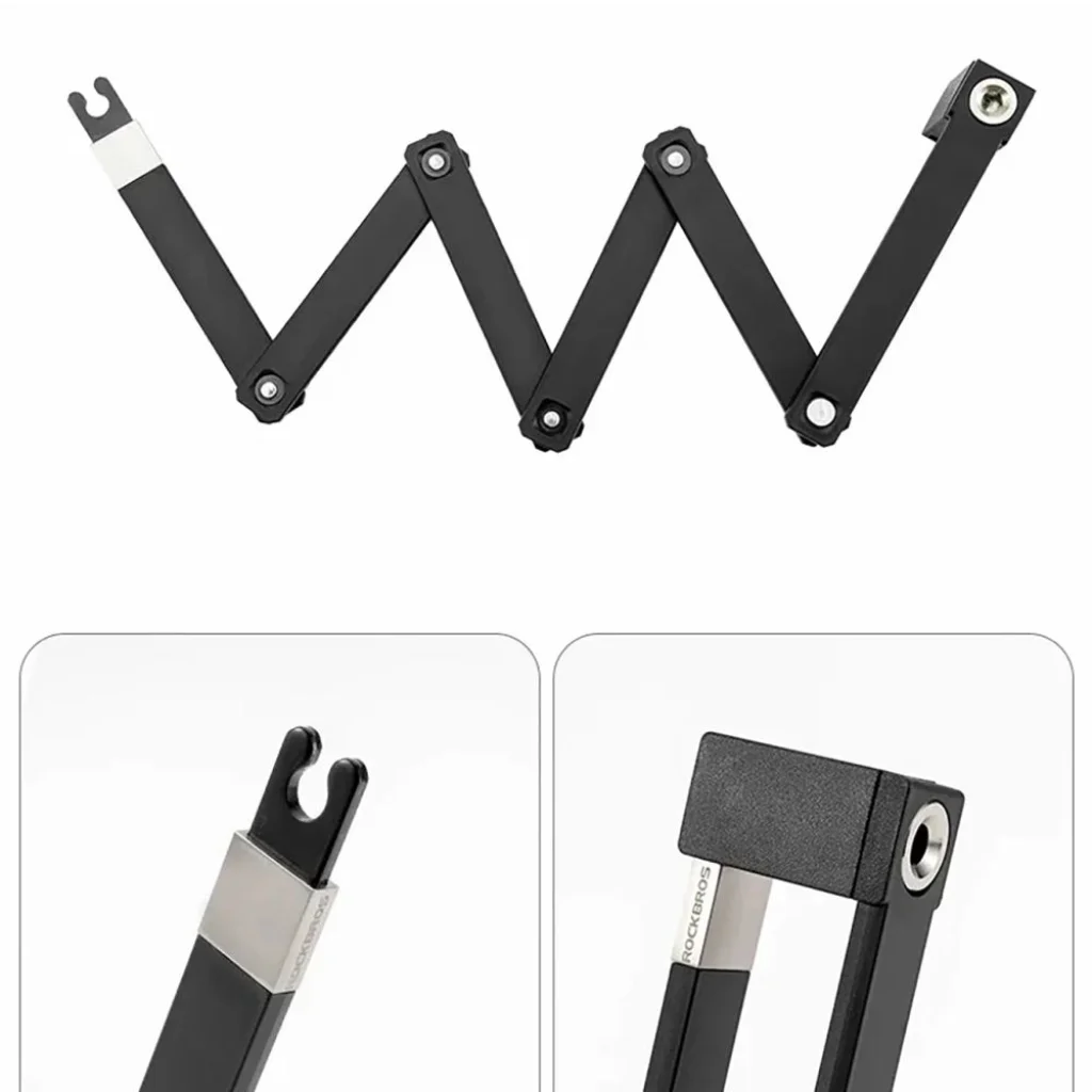A Rockbros 32140003001 biciklizár praktikus megoldást nyújt azok számára, akik robusztus kerékpárvédelmet keresnek kompakt kivitelben. Harmonikaszerű összecsukható kialakítása lehetővé teszi a könnyű szállítást a kereten vagy a nyereg alatt, és kinyitva körülbelül 88-90 cm hosszúságot nyújt. Hat cinkötvözet szegmens biztosítja a jó mechanikai ellenállást. Ez egy funkcionális választás mindennapi bicikli védelméhez a városban és az úton.