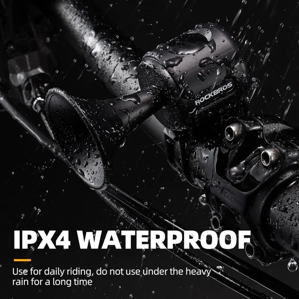 Vízállóság: A Rockbros 34210002001 csengő védett a nedvesség és eső ellen, ami megbízhatóvá teszi még nehéz időjárási körülmények között is.