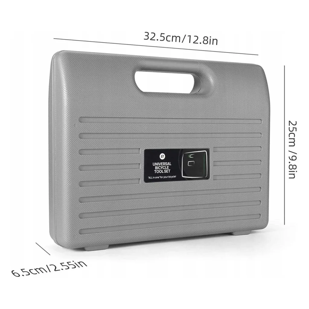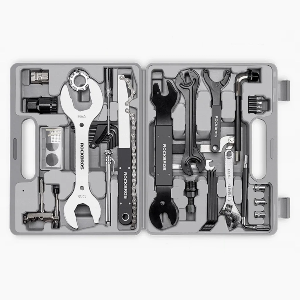 A Rockbros 43210810001 kerékpár javítókészlet összesen 44 elemet tartalmaz - így mind a kezdő amatőr, mind a haladó kerékpár szerelő számára kielégítő. Belül minden szükséges szerszámot megtalálsz az otthoni szervizeléshez, legyen szó országúti, hegyi vagy városi kerékpárról.