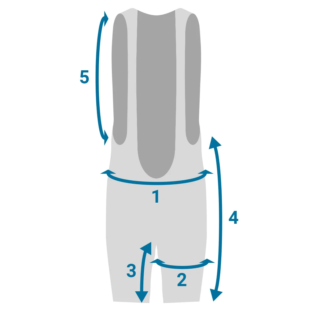 | Size | 1) Hip circumference (cm) | 2) Thigh circumference (cm) | 3) Inner length (cm) | 4) External length (cm) | 5) Arm opening (cm) |