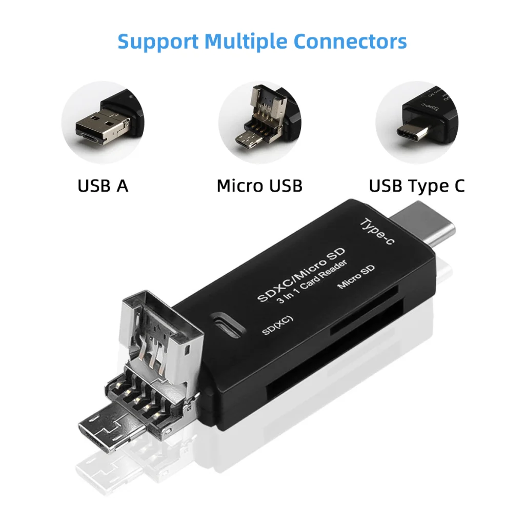 - Csatlakozás: USB-A, USB Type-C, Micro USB