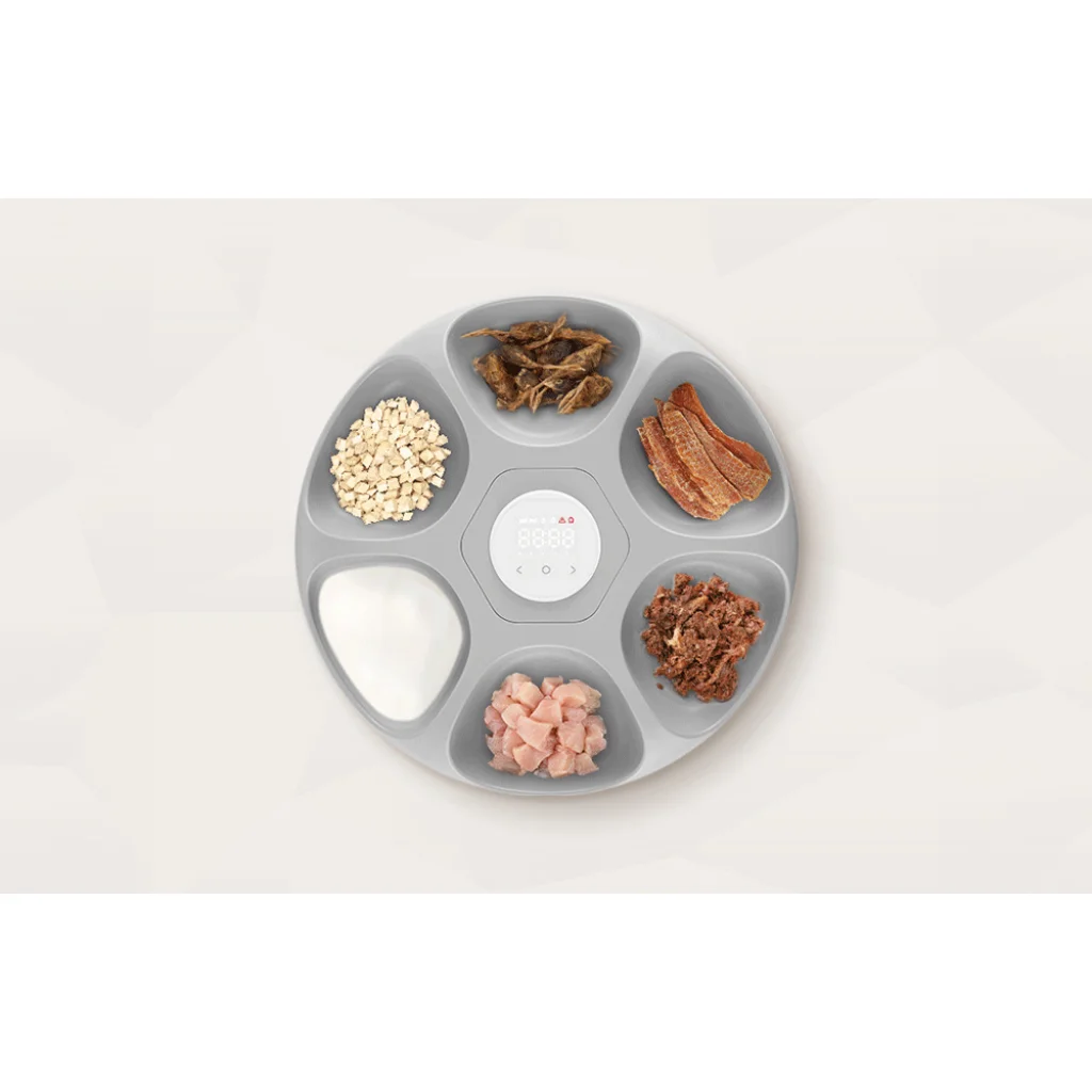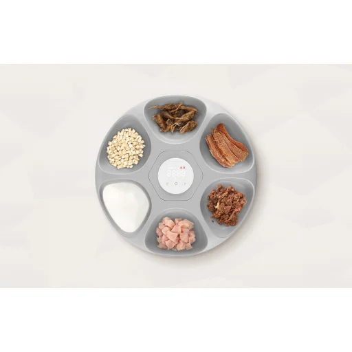 Vigyázzon kisállata egészségére azáltal, hogy értékes ételeket biztosít rendszeres időpontokban, még akkor is, ha távol van otthonról. A Rojeco intelligens kisállat ételadagolója 6 rekesszel van ellátva, amelyek száraz és nedves étel, snackek, valamint víz vagy gyógyszer tárolására szolgálnak, amelyeket négylábú barátjának szüksége van. Biztosítja a felszolgált ételek frissességét, és hűtőszekrényként működik. A vezérlőpanel segítségével beállíthatja az étkezési időket kisállata igényei szerint. Az erőteljes akkumulátor akár 30 napos működést tesz lehetővé, és egy praktikus jelzőfény figyelmeztet, amikor újratöltésre van szükség. Az eszköz tisztítása sima és problémamentes. Emellett a gyerekzár kiküszöböli a véletlen adagolás aktiválásának kockázatát, és a csúszásmentes elemek biztosítják a stabilitást. A zajtalan működés és a kompakt méret további előnyei a terméknek.
