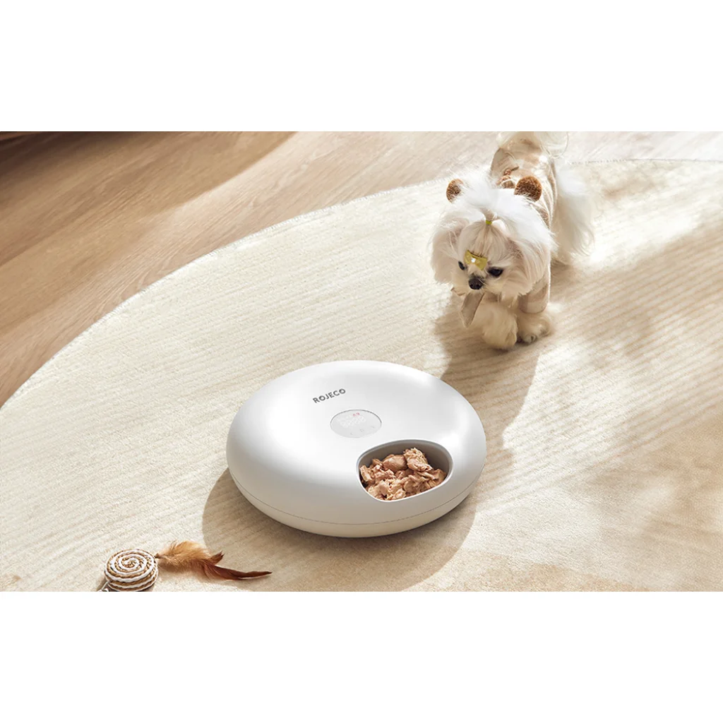 A Rojeco intelligens ételadagolója 6 rekesszel rendelkezik (mindegyik 600 ml kapacitású), amelyek száraz és nedves étel, snackek, víz, kecsketej, különböző méretű fagyasztva szárított ételek, valamint gyógyszerek és kiegészítők tárolására szolgálnak. Ezzel a nagy kapacitással könnyedén megtervezheti kisállata tápanyagdús ételeit az egész napra.