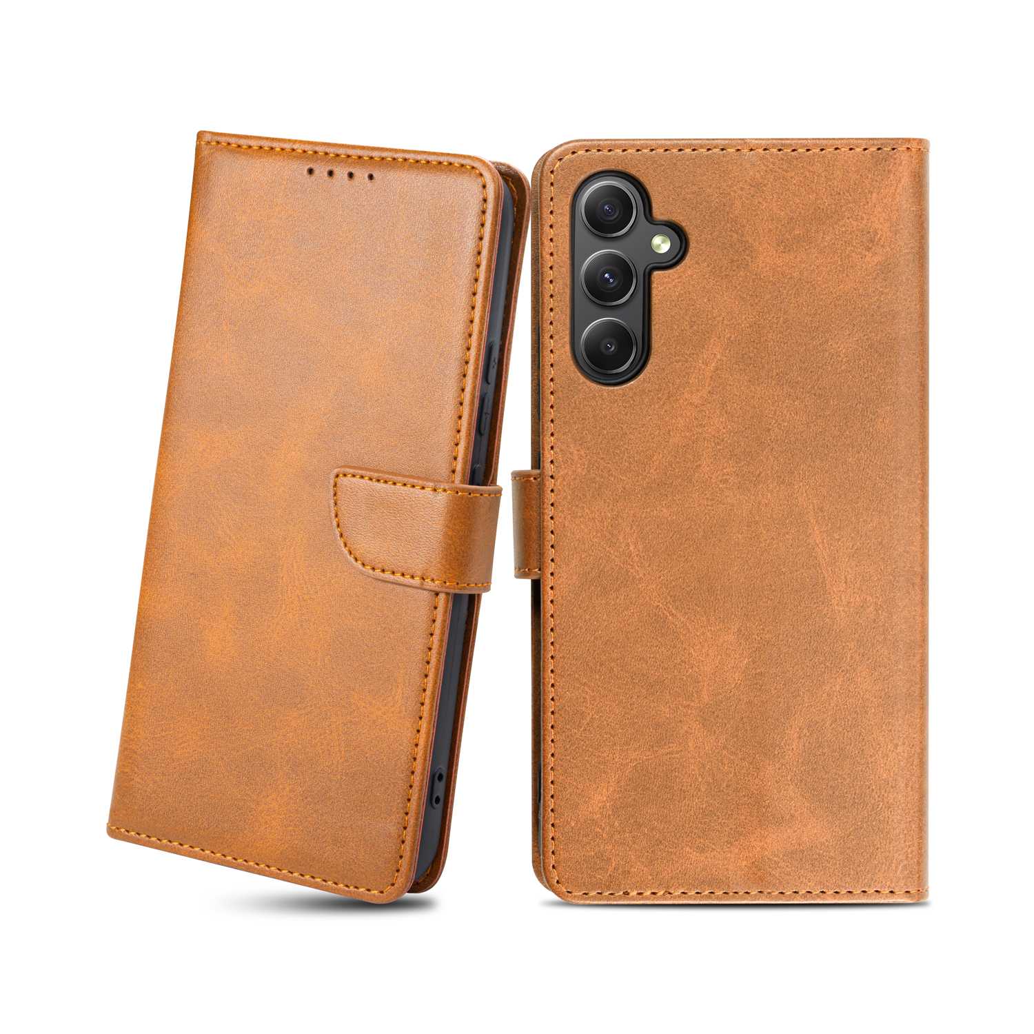 Samsung Galaxy A34 5G mágneses PU bőr fliptok kártyatartóval világosbarna Alphajack
