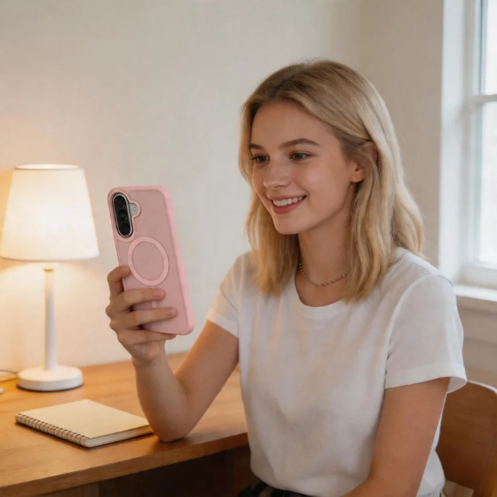 A kamera és a kijelző körüli megemelt peremek védik a legérzékenyebb részeket a sík felületekkel való érintkezéstől. A beépített mágneses gyűrű teljes MagSafe-kompatibilitást biztosít, így használhatók a mágneses kiegészítők is. A precíz kivágások teljes hozzáférést nyújtanak az összes porthoz, gombhoz és hangszóróhoz.