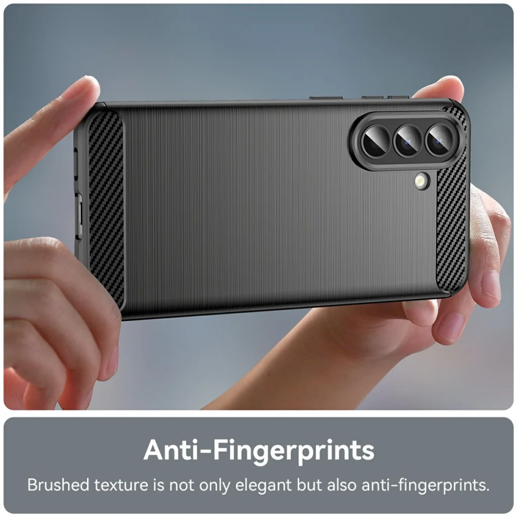 A tok lenyűgöző megjelenését a hátlap finom szálcsiszolt textúrája és a felső és alsó részen található karbon mintázatú betétek adják. Ez a modern és stílusos kombináció nemcsak esztétikus, hanem rendkívül praktikus is. A szálcsiszolt felület nem csupán elegáns, hanem ujjlenyomat-mentes is, így telefonod mindig tiszta és kifogástalan megjelenésű marad, elkerülve a makacs foltokat.