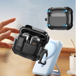 A Tech-Protect Carbonox védőtok ideális megoldás azok számára, akik teljes biztonságban és elegáns stílusban szeretnék tartani készülékeiket. Ez a masszív, páncélozott tok kiváló minőségű TPU és PC anyagokból készült, amelyek maximális védelmet nyújtanak ütődésekkel, karcolásokkal és ujjlenyomatokkal szemben. Az innovatív zár biztonságos gombbal teszi lehetővé a tok könnyű nyitását és zárását, biztosítva a fülhallgatók védelmét minden helyzetben. A Carbonox tok vezetékes és vezeték nélküli töltést is lehetővé tesz, így nem szükséges levenni a tokot a fülhallgatók töltéséhez. Rendkívül funkcionális kialakítása magában foglalja a látható előlapi LED diódát. További előnye egy tartós, levehető kulcstartó karabinerrel, amely lehetővé teszi a tok kényelmes rögzítését kulcsokhoz, táskákhoz vagy övekhez. Ezenkívül telefonállvány funkcióval is rendelkezik, amely lehetővé teszi az okostelefon stabil elhelyezését – ideális megoldás filmnézés, videohívások vagy multimédiás tartalmak használata közben. A Tech-Protect Carbonox megbízható védelem, kényelem és modern funkcionalitás egyben – ideális választás az aktív életmódot élők és a stílusos megjelenést kedvelők számára.