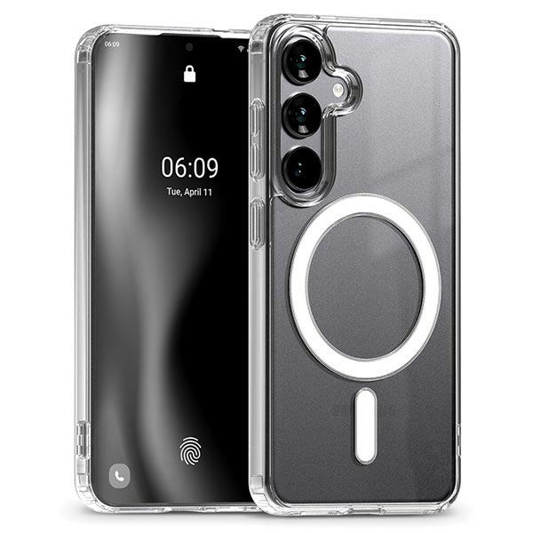 Mercury Jelhard MagSafe A Mercury Jelhard MagSafe tok egy karcsú, könnyű tok, amely rugalmas, ütéselnyelő TPU-ból és merev PC-ből készült. Ezeknek az anyagoknak köszönhetően hatékonyan védi a telefont a váratlan leejtésektől és karcolásoktól. A tok mágneses gyűrűvel van felszerelve, amely kompatibilis a MagSafe vezeték nélküli töltőkkel, biztosítva a gyors és egyszerű töltést. A tok felhelyezése után nem növeli jelentősen a készülék méretét, biztos fogást nyújt, és visszafogott dizájnjának köszönhetően megőrzi a telefon minimalista esztétikáját. Műszaki adatok: Típus: Kemény tok Szín: Átlátszó Anyag: TPU, PC Kompatibilitás: Samsung Galaxy S24 S921