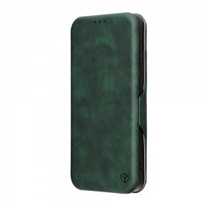 Ez a különleges Techsuit Safe Wallet Plus tok elegáns, vintage hatású zöld színével és texturált felületével azonnal magával ragadja a tekintetet. A prémium minőségű, kellemes tapintású anyag (valószínűleg PU bőr) nemcsak esztétikus, hanem tartós és ellenálló a mindennapi használat során.