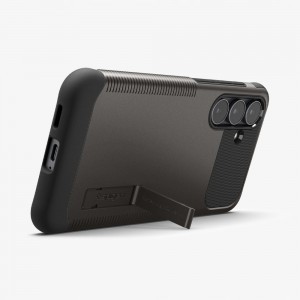 A Spigen Slim Armor Magsafe tok egy olyan telefontok, amely ötvözi a kivételes védelmet az elegáns, karcsú dizájnnal. Azok számára tervezték, akik szeretnék biztosítani okostelefonjuk szilárd védelmét, miközben nem mondanak le a stílusról és a használat kényelméről. Két rétegű felépítésének köszönhetően a Slim Armor hatékonyan védi a készüléket a leesések és ütések ellen, ugyanakkor megőrzi karcsú profilját, ami kényelmes fogást biztosít. Kiváló választás azok számára, akik biztosak akarnak lenni abban, hogy telefonjuk a legjobb kezekben van. A rugalmas TPU és a tartós polikarbonát kombinációja maximális védelmet nyújt az ütések, leesések és karcolások ellen. A megerősített sarkok légpárnákkal hatékonyan elnyelik a rázkódásokat, növelve az ütésállóságot. A fejlett védelem ellenére a tok megőrzi karcsú alakját, nem ad további terjedelmet a készülékhez. A finoman megemelt szélek a képernyő és a kamera körül további védelmet nyújtanak a karcolások ellen, a tökéletesen kialakított kivágások pedig könnyű hozzáférést biztosítanak a telefon összes portjához, gombjához és funkciójához. A praktikus, összehajtható állvány lehetővé teszi a kényelmes filmnézést, böngészést vagy videohívások lebonyolítását kéz használata nélkül. A tokot MagSafe technológiával kompatibilis gyűrűvel szerelték fel. A mágneses gyűrű maximális töltési hatékonyságot, valamint gyors és egyszerű csatlakozást biztosít az összes MagSafe funkciós tartozékkal.