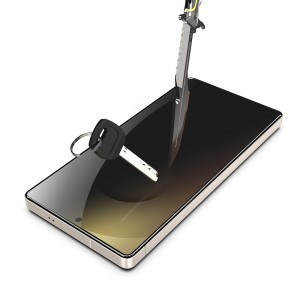 - 9H keménység: A prémium minőségű TitanGlass anyag rendkívüli ellenállással bír. Gondtalanul hordhatja telefonját a zsebében kulcsok vagy más éles tárgyak mellett, az üvegfólia hatékonyan megóvja kijelzőjét a karcolásoktól és horzsolásoktól. (Ahogy a képeken is látható, ellenáll a késnek és a fúrógépnek is.)