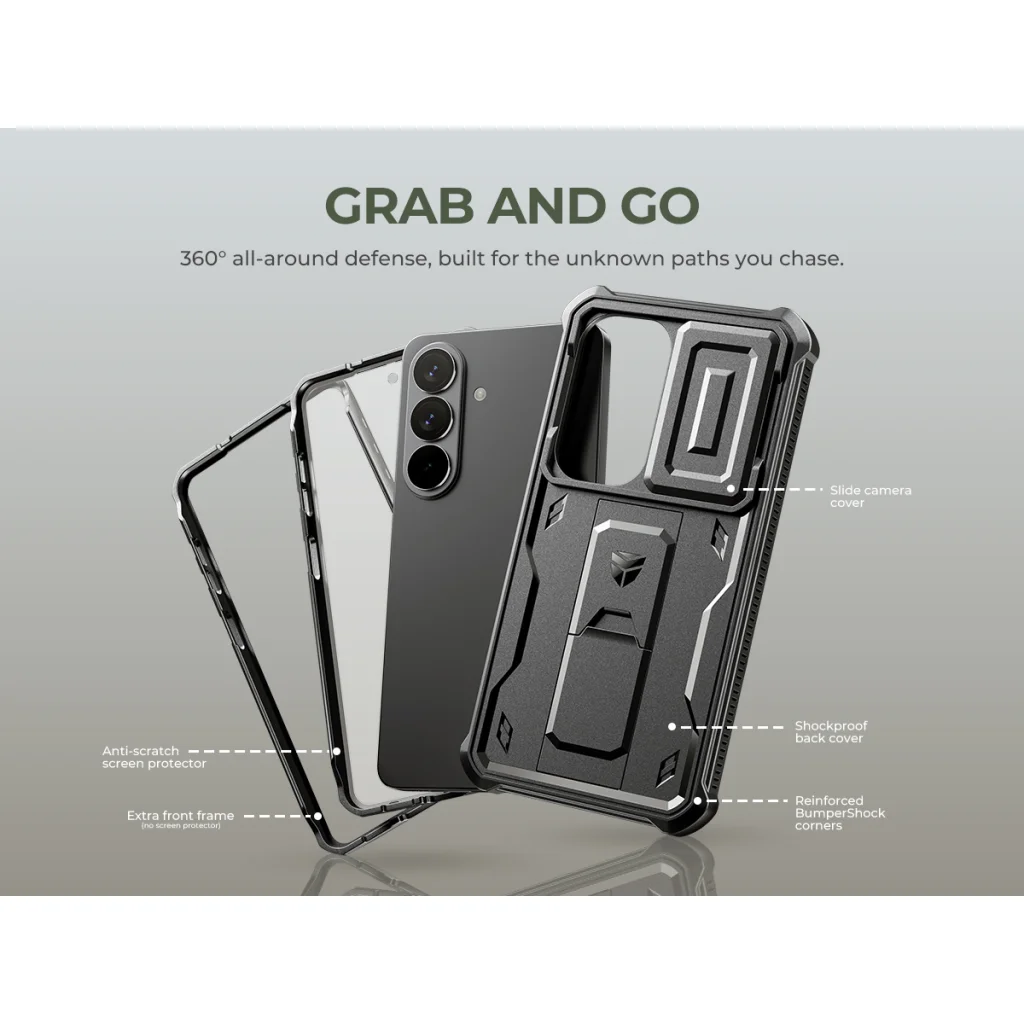 A Dexnor tok egy innovatív, többrétegű kialakítással védi telefonodat minden szögből. A csomag tartalmaz egy beépített, karcálló képernyővédővel ellátott előlapi keretet a kijelző tökéletes oltalmáért, valamint egy opcionális "extra" előlapi keretet (képernyővédő nélkül) azoknak, akik a telefon eredeti érintését preferálják vagy már rendelkeznek saját kijelzővédővel. Ehhez párosul az ütésálló hátlap és a megerősített BumperShock sarkok, így a készüléked minden irányból – elölről, hátulról és oldalról – garantáltan biztonságban van a karcolásoktól és ütésektől. Egy igazi „Grab and Go” társ az ismeretlen ösvényekre.