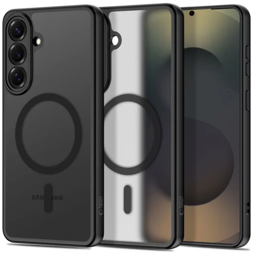A Tech-Protect BasicMag MagSafe tok minimalista designját és hatékony védelmét emeli ki. Karcsú formája tökéletesen illeszkedik a telefonhoz, megőrizve annak könnyedségét és a mindennapi használat kényelmét. Kétrétegű kialakítása kombinálja a rugalmas TPU keretet a kemény polikarbonát hátlappal, amely teljes körű védelmet nyújt ütés, esés és karcolás ellen. A matt kivitel eleganciát kölcsönöz, és hatékonyan védi a felületet a látható ujjlenyomatoktól. Az emelt élek a kijelző és a kamera modul körül megvédik az érzékeny részeket a közvetlen érintkezéstől a talajjal. A beépített mágneses gyűrű teljes kompatibilitást biztosít a MagSafe technológiával, lehetővé téve a gyors vezeték nélküli töltést és a mágneses kiegészítők használatát a tok eltávolítása nélkül. A precíz kivágások teljes hozzáférést biztosítanak az összes csatlakozóhoz, gombhoz és hangszóróhoz, míg a tökéletes illeszkedés a magas minőségű kivitelezést bizonyítja.
