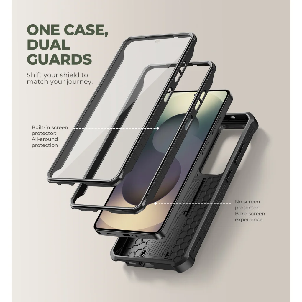 Ez az egyedi Dexnor tok rugalmas megoldást kínál a kijelző védelmére, kétféle előlapi keret formájában, így te választhatod ki a tökéletes védelmet vagy élményt: